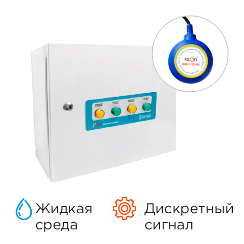 Комплексное решение контроля уровня для жидкостей: чистая вода; характеристики датчика: поплавковый кабельный, 250 В AC, IP68, 0...+60 С; характеристики шкафа управления: кол-во дискретных входов - 4, кол-во дискретных выходов - 2, 220 В AC, IP54, ПР103-24