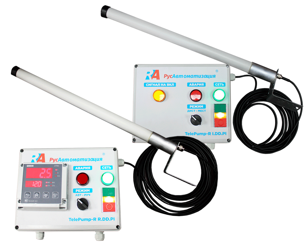 Шкафы контроля и управления уровнем РусАвтоматизации предназначены для дистанционного контроля над уровнем жидкости в накопительных емкостях и управления водозаборными насосами по радиоканалу (возможно исполнение с GSM-сигналом). Используются там, где нет возможности проложить кабельные трассы либо затруднен доступ к месту установки насосной станции. Они решают проблему нежелательности нахождения оператора в насосной с вредной для здоровья человека окружающей средой. Кроме того, шкаф контроля помогает централизовано управлять сразу несколькими блоками управления. ШУН представлен в виде пульта управления и соединён посредством радио- или GSM-сигнала с насосной станцией (приемником сигнала).