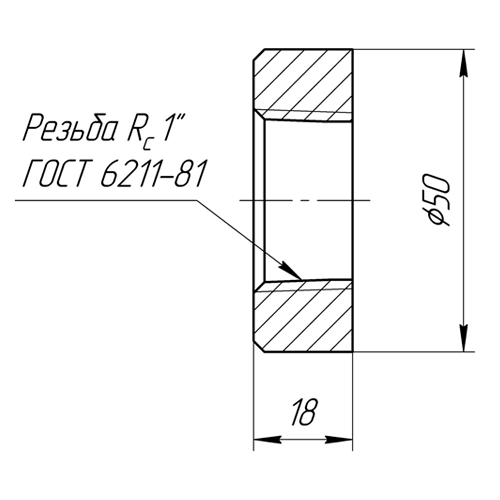 Втулка 1" РТ под приварку, труб. конич. резьба R1"(PT1"), ф 50мм, L=18мм.,ст.12Х18Н10Т, Pmax=10/3 МПа (+20/+475 град.С)