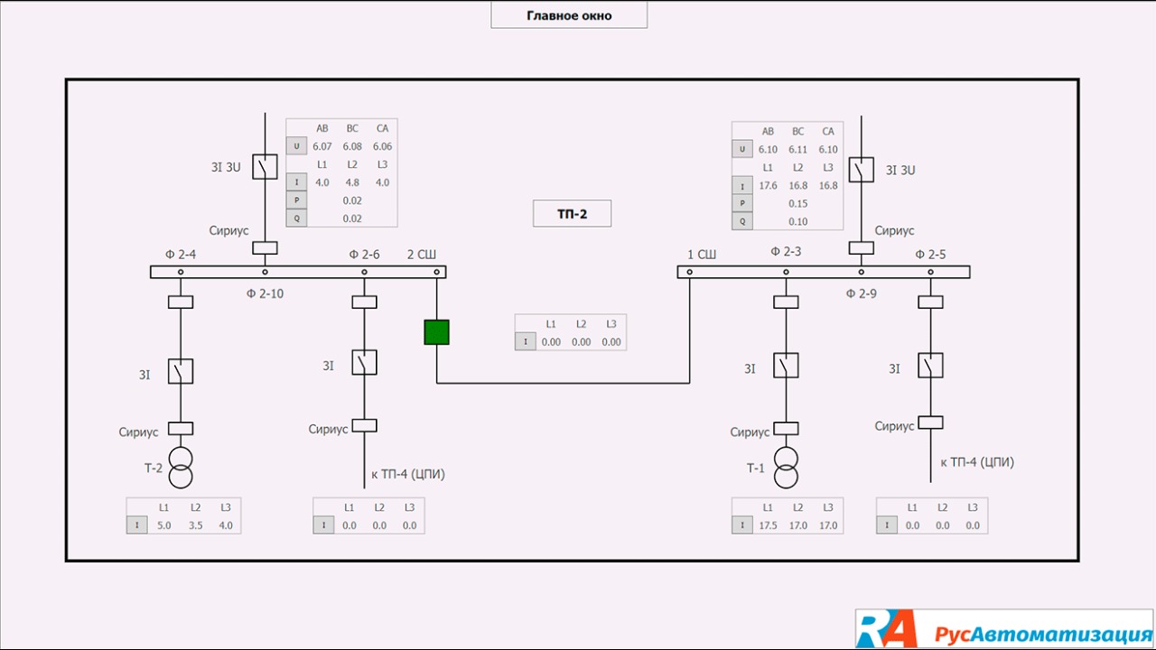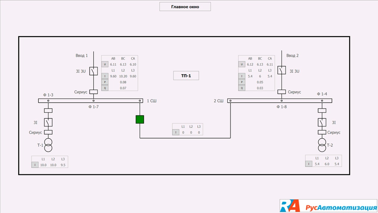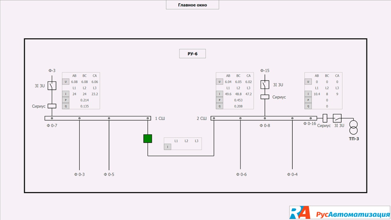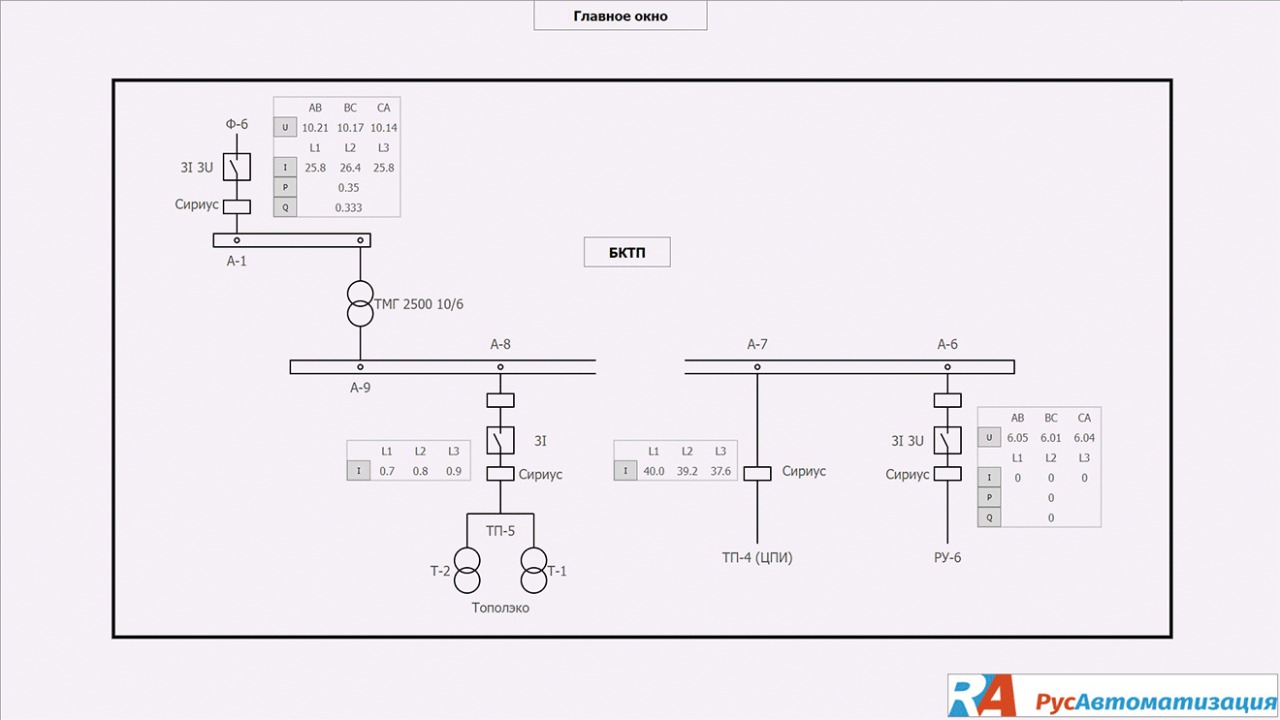 - сбор информации с ТП-1 и ТП-2, БКТП 10/6 и РУ-6;